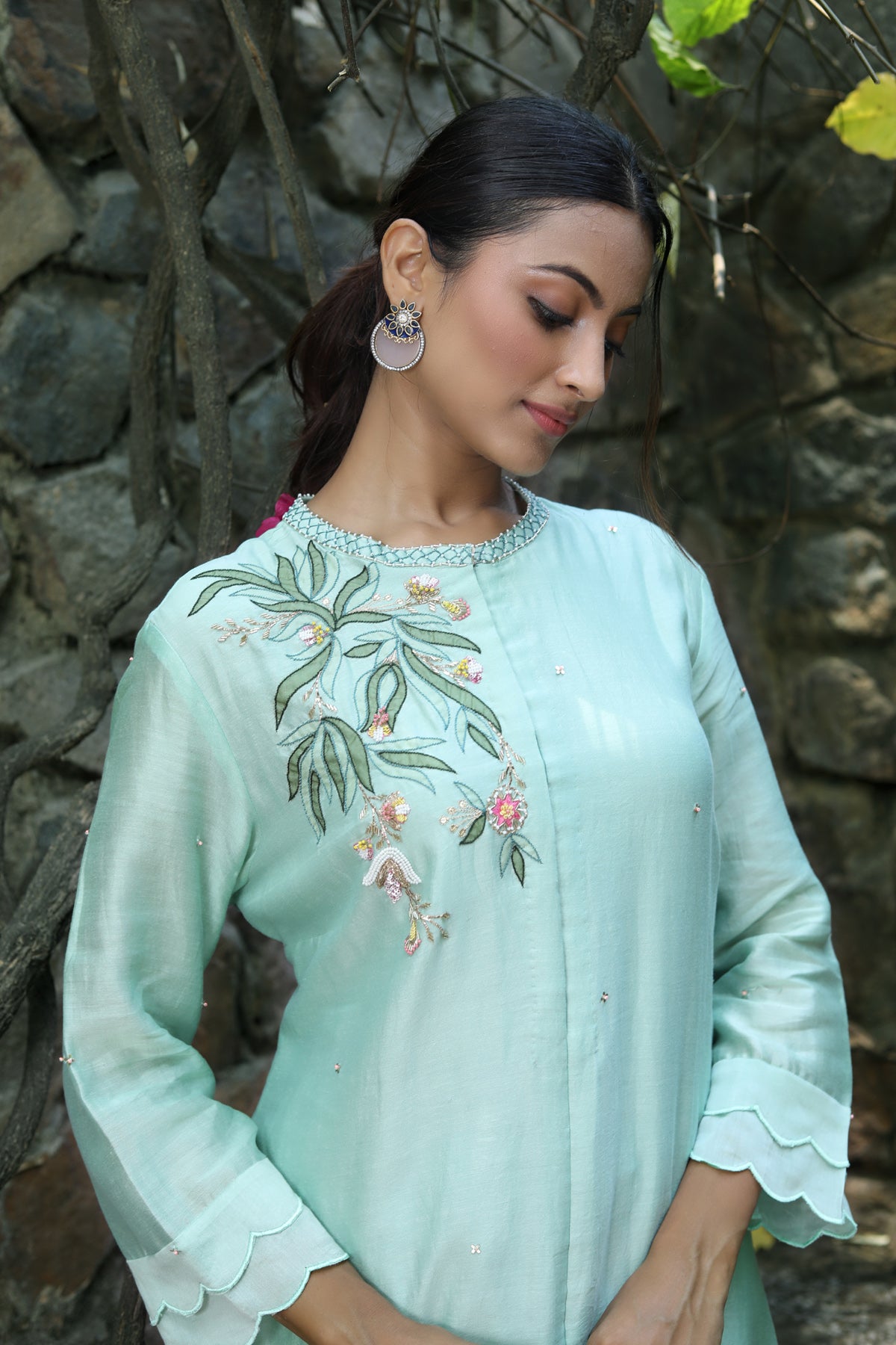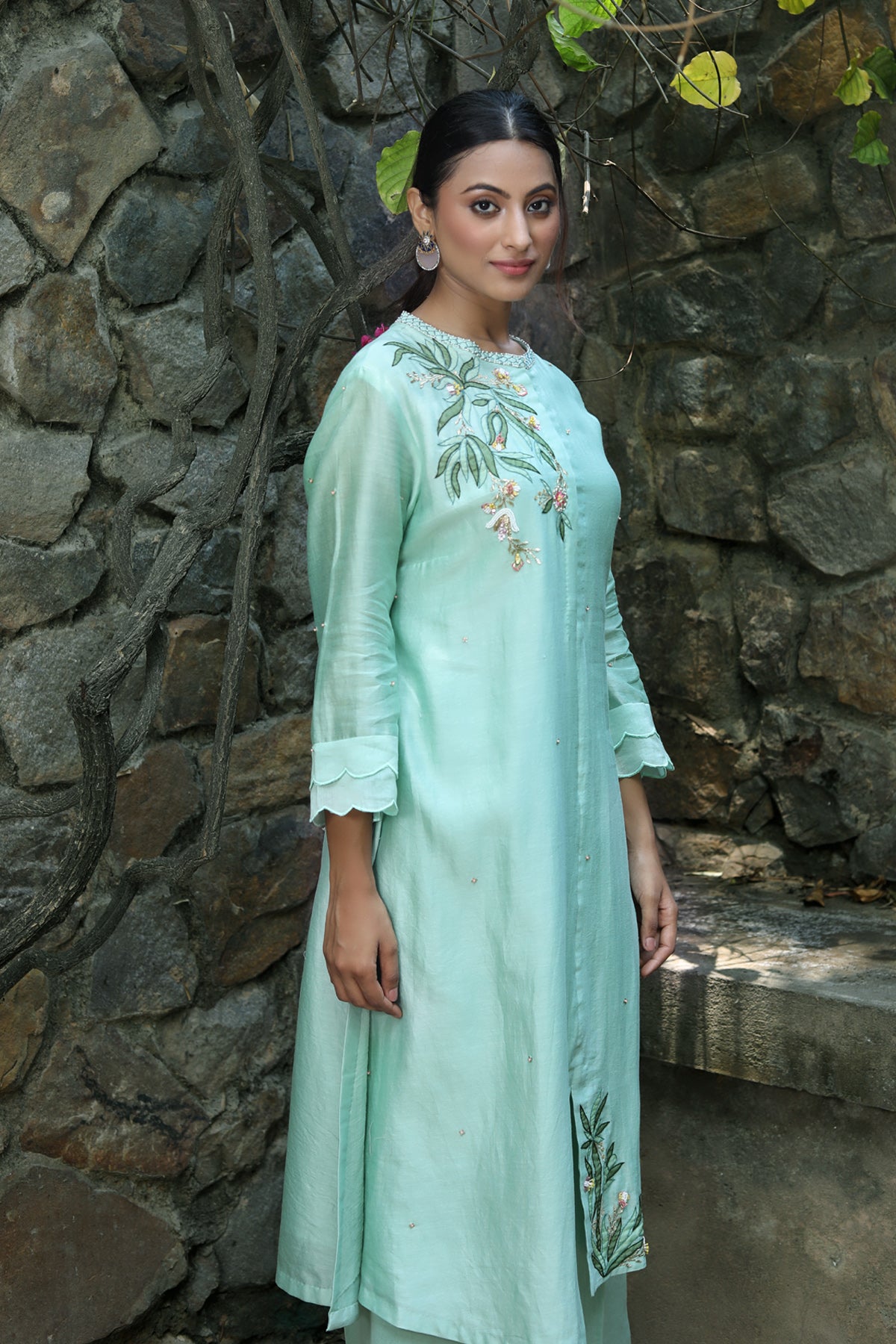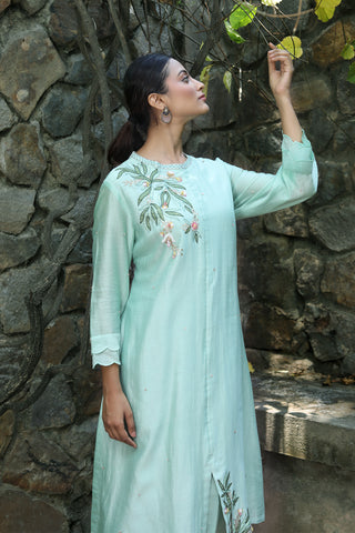 PAPEEHA MINT SILK CHANDERI KURTA SET Sale